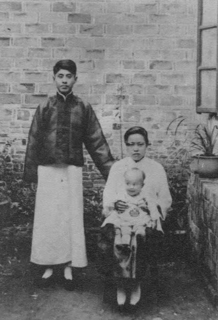 上图:1923年杨振宁十个月大时与父母亲于合肥四古巷故居窗外