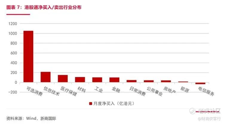 尤其是可选消费行业,就是因为南向资金狂买阿里巴巴(单月流入超过800亿港元),直接成为了净流入量最多的板块。