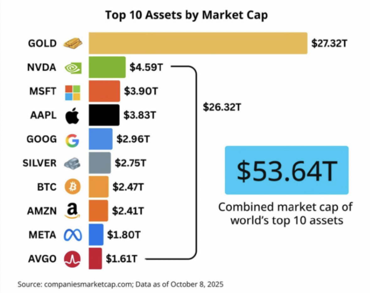 黄金已经连涨10周了,过去10周黄金ETF净流入达342亿美元,创历史最高纪录,现在黄金市值>“科技巨头”市值+比特币市值+白银市值的总市值[看涨][看涨] $黄金主连 2512(GCmain)$