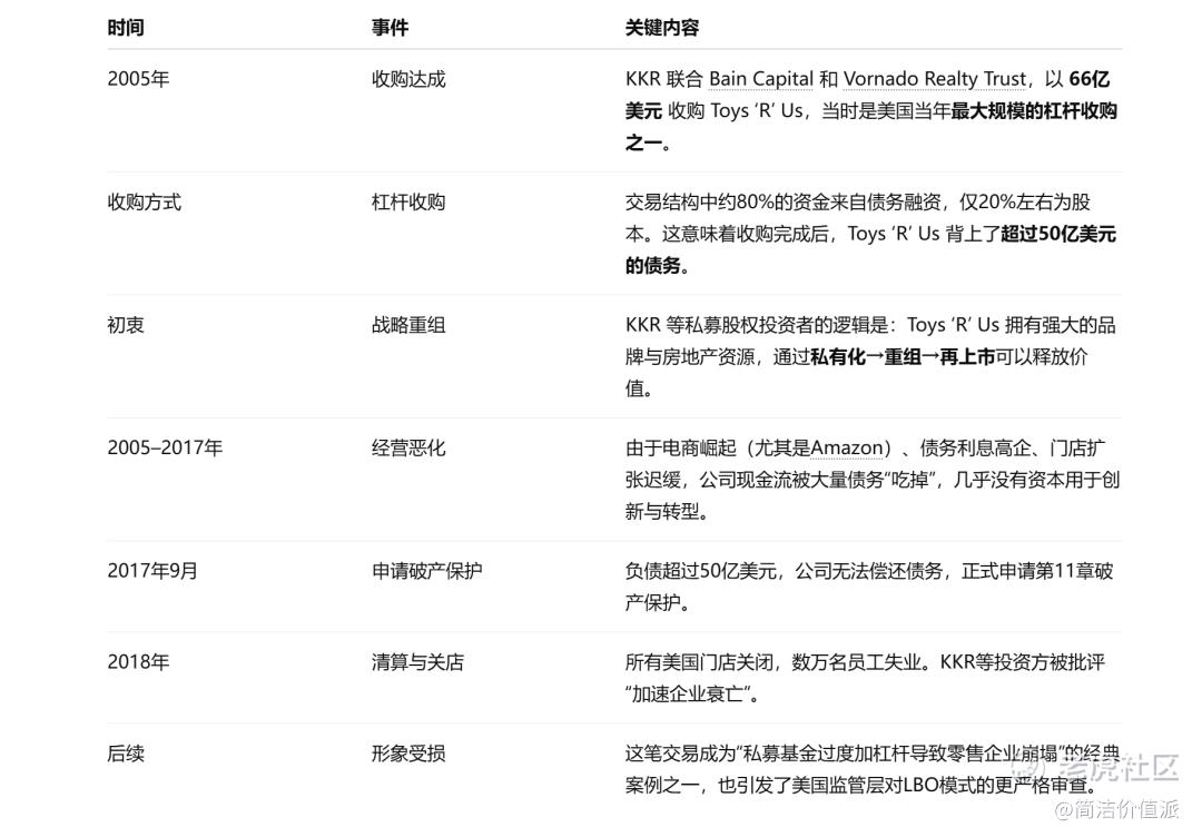 KKR与Toys 'R' Us之间的关系,是一场华尔街最著名、也最具争议的杠杆收购(LBO)案例之一。它从最初的资本盛宴,演变成了一个经典的投资“教训”。以下是这笔交易的关键脉络。