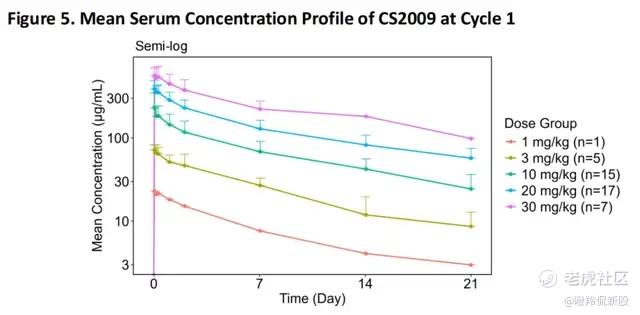 从PK入手,CS2009的终末半衰期是6-8天,这支持了每3周一次用药(Q3W)的给药方案,同时多次给药无明显积蓄的特性,代表CS2009拥有极高的治疗安全窗口、更可控的疗效和更简便的临床管理。