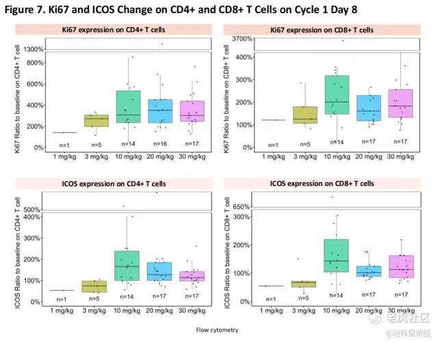 2)随着CS2009剂量上调,T细胞激活与增殖标志物(Ki67与ICOS)呈剂量依赖性上调,T细胞正在活跃地分裂和扩增,且T细胞接受了持续的激活信号和功能得到强化;