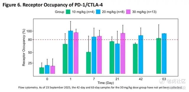1)当CS2009剂量达到或超过20mg/kg时,PD-1/CTLA-4受体占有率均超过80%,这意味着CS2009实现了最大程度的PD-1/CTLA-4双阳性细胞的靶点抑制,且T细胞识别和杀伤肿瘤能力得到最大程度的释放;