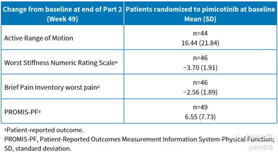 基线时随机分配至匹米替尼组患者在Part 2结束时(第49周)的临床结局评估