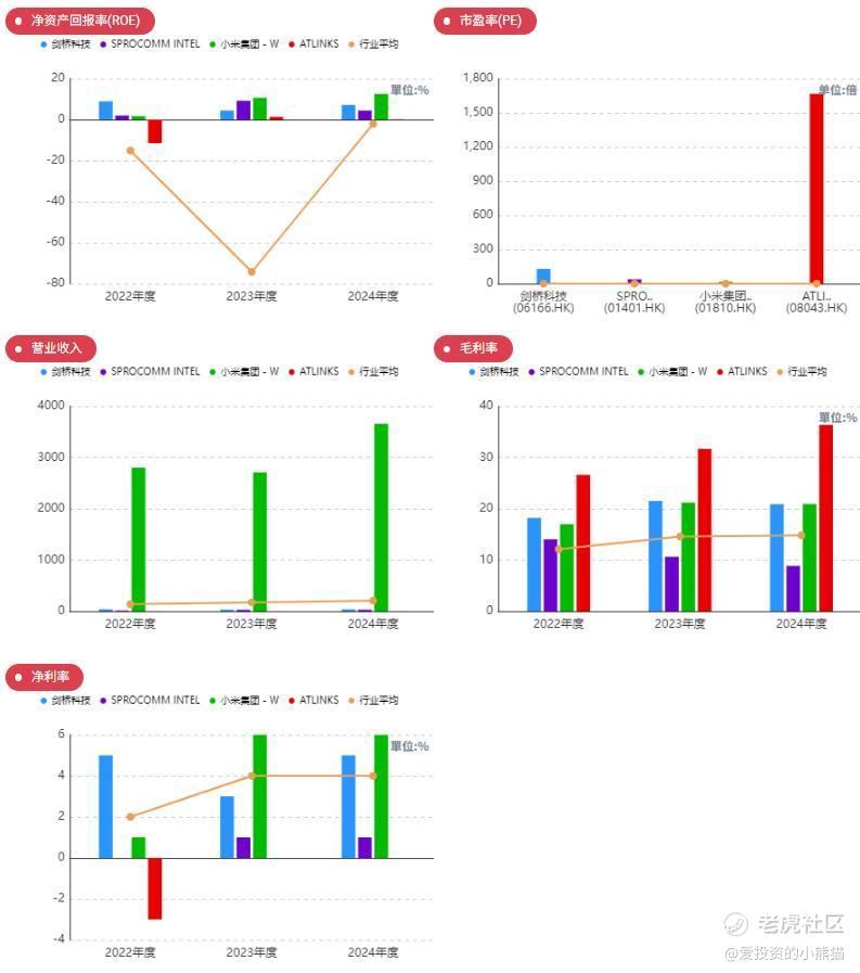 剑桥科技收入分别约为人民币37.84亿元、30.85亿元、36.50亿元、17.61亿元、20.34亿元,2025年前6月同比+15.48%;