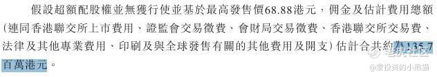 然后这个票招股书上按发售价68.88港元计算,公开的上市所有开支总额约为1.36亿港元,募资额约46.16亿港元,占比约2.94%,开支相比募资额算是比较少了。