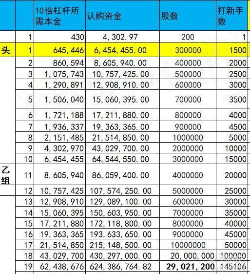 乙头需要认购资金646万,乙组的各档融资所需要的本金还有融资金额对应如下表: