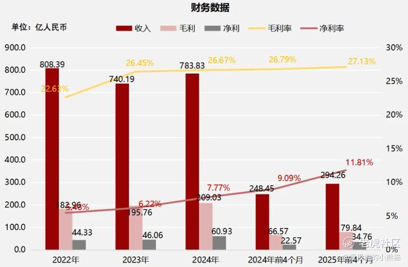公司近三年营收有所回落,但毛利、净利均逐年递增,毛利率由2022年的22.63%上升至2023年26.45%,2024年更是上升至26.67%,主要是产品结构优化,推出更多高毛利产品,以及实施全面的成本管理策略。