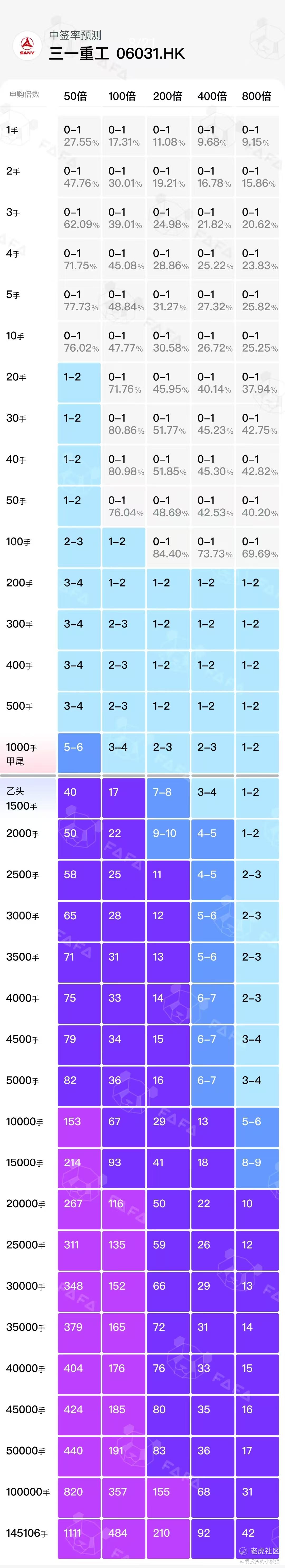 不过这个是个ah股啊,2000亿左右的上市估值,挖掘机龙头,对应A股折让幅度达13.1%-17.2%,目前三一重工也是所有票里面认购倍数最低的,基石阵容豪强林立,又按照机制b来发,散户是砸不死的这个票的,光绿鞋都能护盘了。散户是砸不死这个票的,大盘股也不太容易破发吧,不过确实折价空间有限,就按目前的热度看,这个票应该是中签数量最多的,不仅认购倍数少而且募资金额也大,希望能中签多一点。这样即便涨得少赚的也不少。
