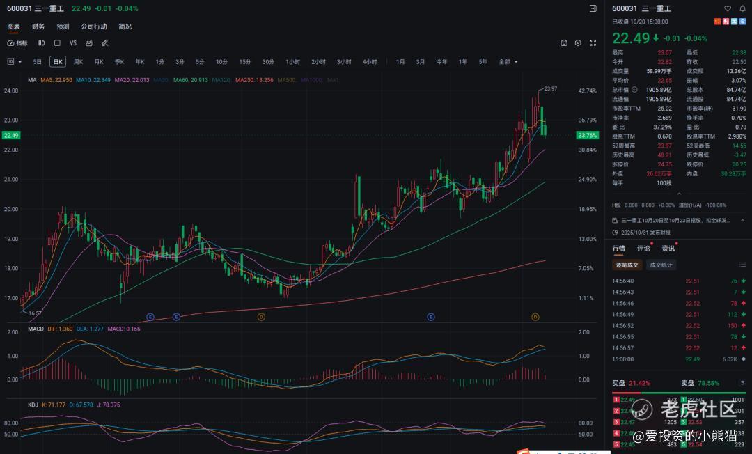截至2025年10月20日,三一重工A股(600031.SH)收盘价为22.49元人民币(约24.53港元),而H股招股价区间为20.3-21.3港元,对应A股折让幅度达13.1%-17.2%。这一溢价水平低于同行业可比公司(如剑桥科技H股较A股折让35.8%),反映出市场对三一重工作为全球工程机械龙头的估值认可度较高。若按H股发售价中位数20.8港元计算,A/H溢价率约为18%,处于近年来工程机械板块A+H股溢价的合理区间 。