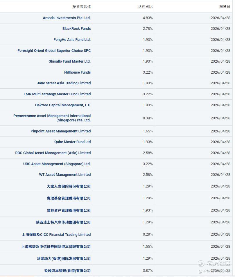 国际机构:淡马锡(7500万美元)、贝莱德(4202万美元)、UBS AM Singapore(5000万美元)、Oaktree(3000万美元) 。