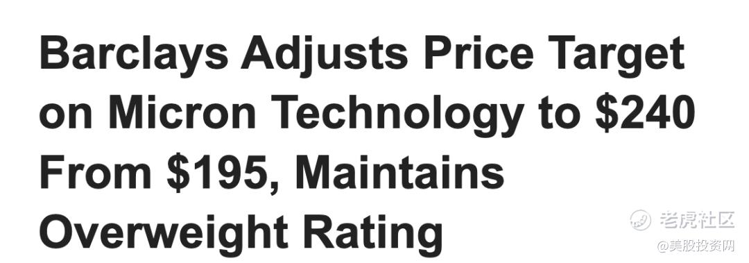 巴克莱将 Micron (MU) 目标价自 195 美元上调至 240 美元,并维持‘增持’评级,推动美光科技大涨超5%,芯片股AMD、博通等普遍走高,半导体行业的强劲势头为大盘提供了核心动力。