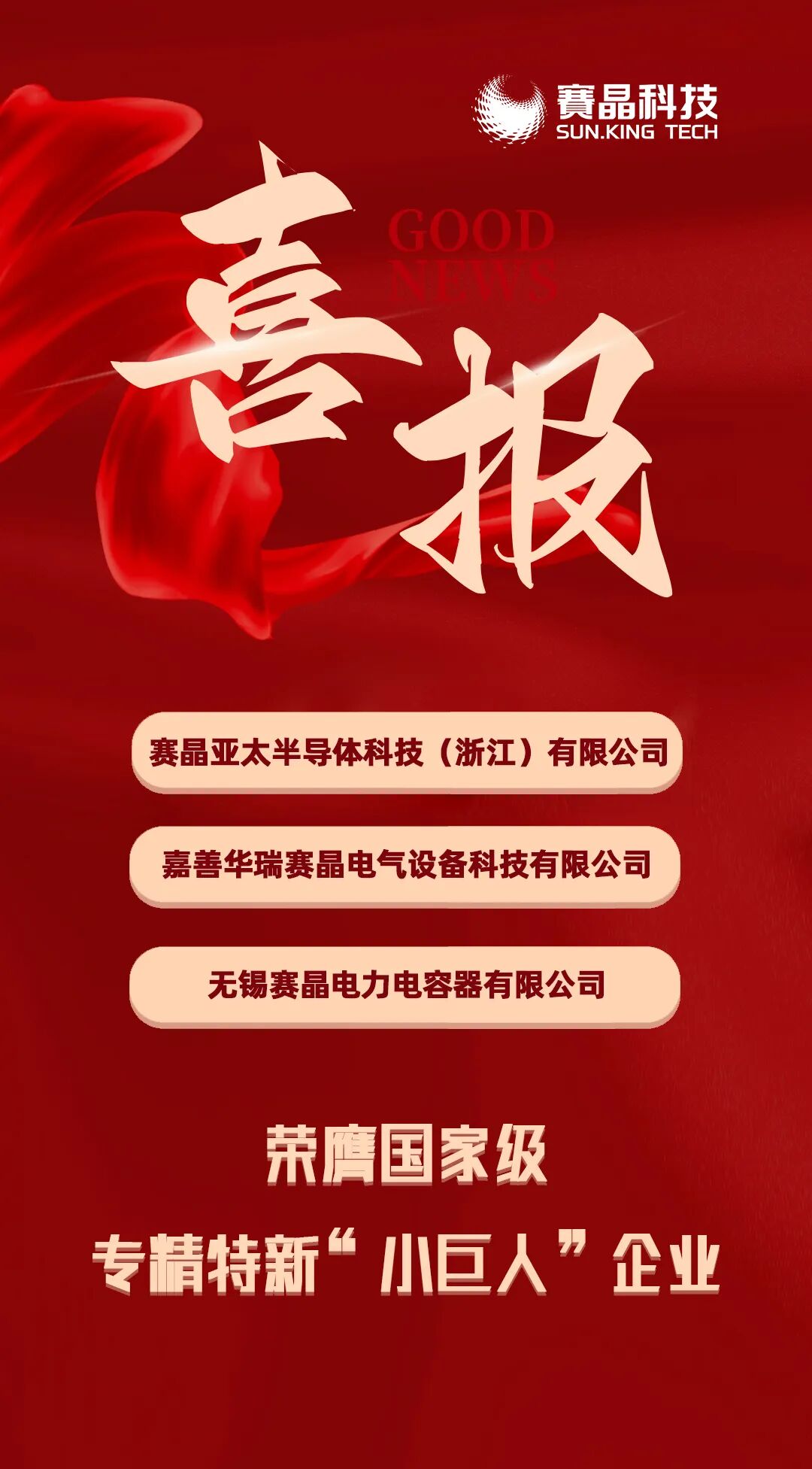 10月20日,国家级专精特新“小巨人”企业最新一批公示名单揭晓。赛晶科技集团有限公司(简称“赛晶科技集团”)旗下赛晶亚太半导体科技(浙江)有限公司(简称“赛晶半导体”)、嘉善华瑞赛晶电气设备科技有限公司(简称“嘉善华瑞赛晶”)、无锡赛晶电力电容器有限公司(简称“无锡赛晶”)成功入选。