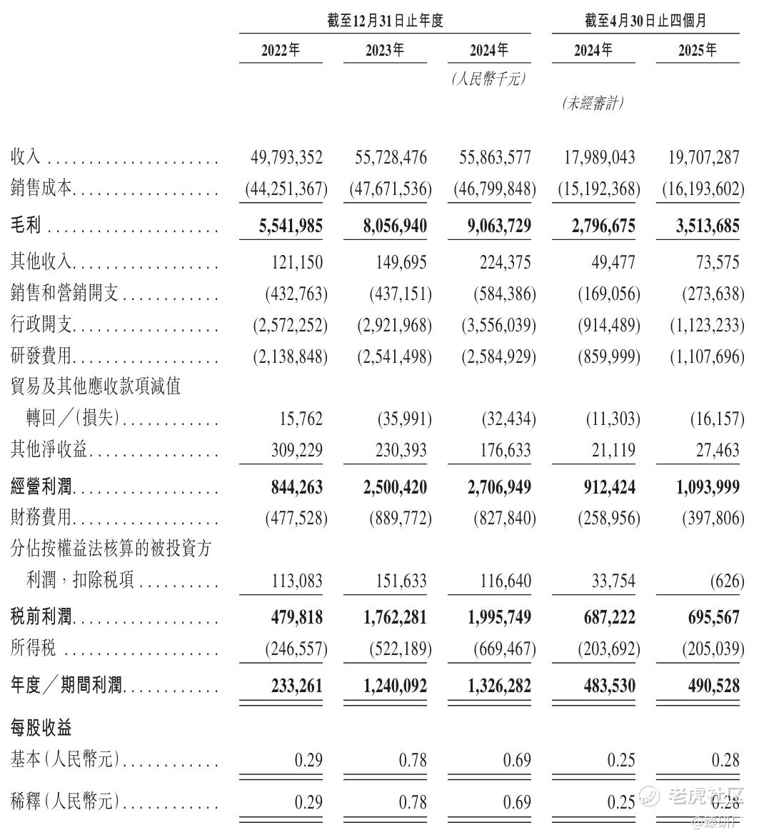 公司收入整体保持稳定增长,毛利上升:公司收入呈现出稳定的增长势头,从2022年的497.93亿元人民币上涨至2024年的558.64亿元人民币,且毛利从2022年的55.42亿元人民币增加至2024年的90.63亿元人民币。2022年至2023年间,公司来自汽车电子的收入大幅增加,汽车电子解决方案的收入从2022年的人民币153.65亿元人民币增加至2023年的人民币 171.52亿元人民币,整体来看公司业务规模持续增长且销售成本得到了妥善控制。
