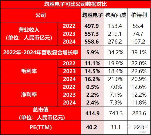 从估值来看:均胜电子的估值相对合理且具有吸引力,其最新PE 为40.2,相较同行业汽车零部件智能化子板块平均25-30倍的估值,其价值有所被高估。但作为全球智能汽车技术和被动安全领域的龙头企业,其投资潜力值得期待。