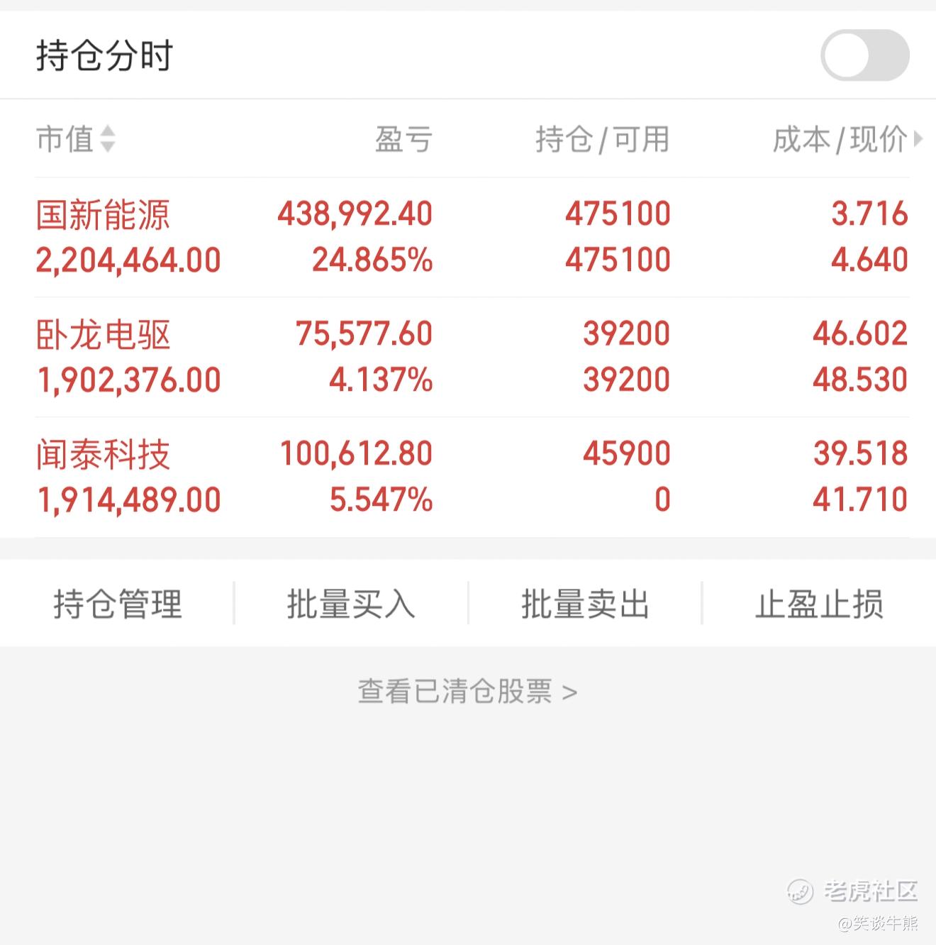 学会评估自己的风险承受能力,在结合自己的收入以及财务状况,合理的评估自己能承受的风险,确定好自己的投资规模。学会仓位控制,切记把自己的全部身家都投入股市,用闲钱投资,可以采取分批买入,给自己留30% 的后路,用于加仓或者做$闻泰科技(600745)$ $卧龙电驱(600580)$ $国新能源(600617)$