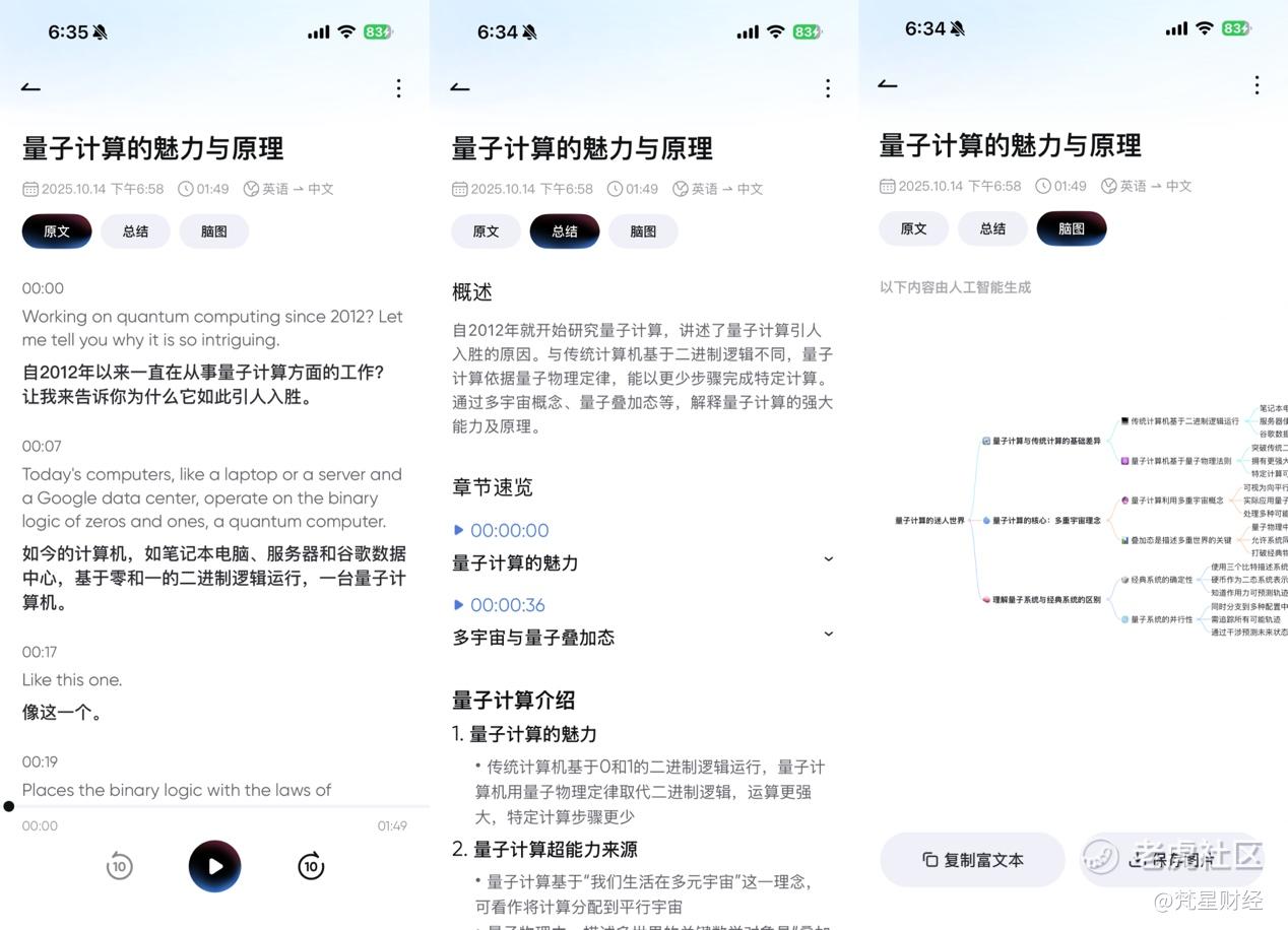 用户同传结束后,可一键查看原文、AI内容总结及思维导图