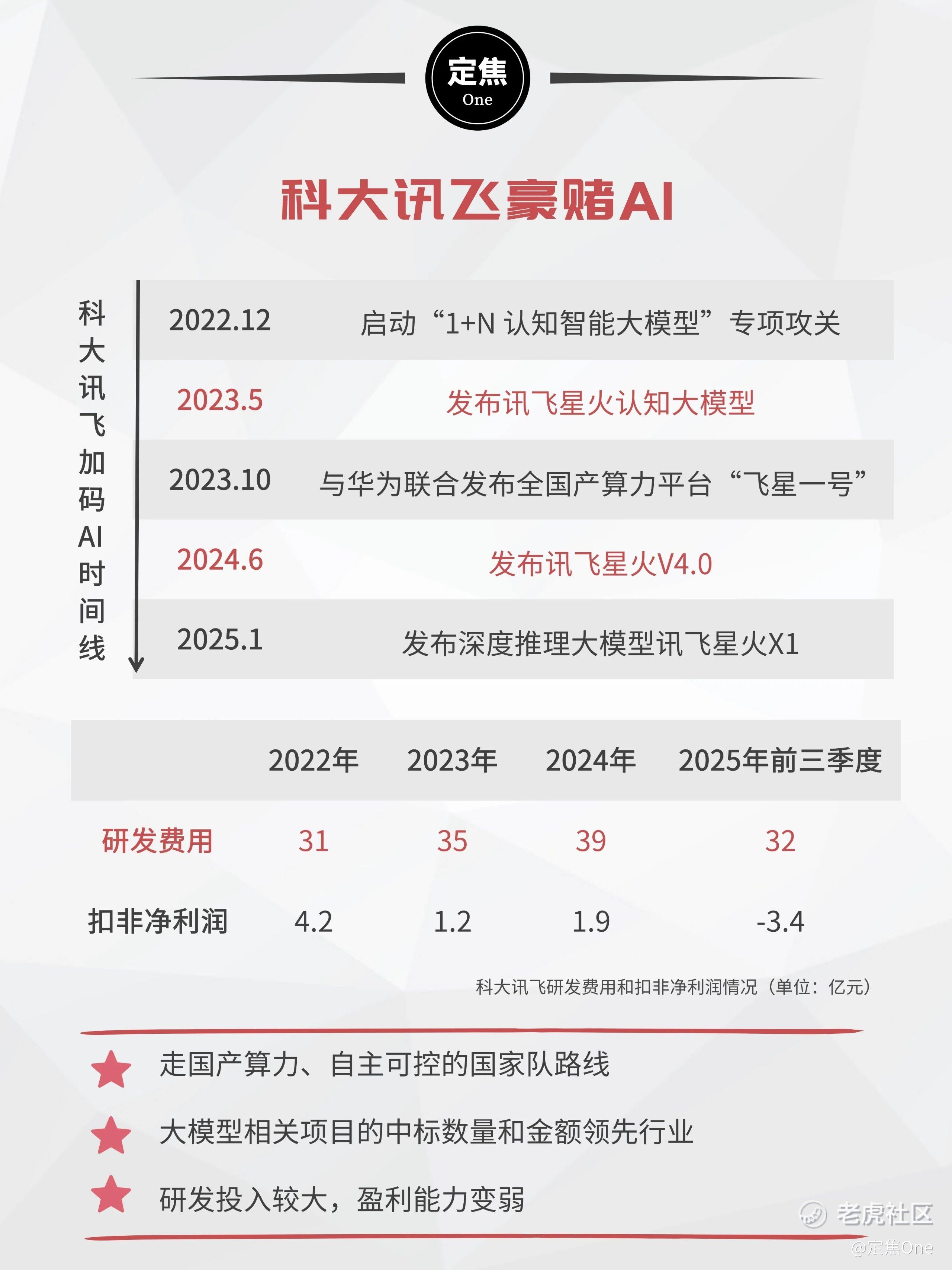 从2023年开始,科大讯飞All in AI,发布了讯飞星火大模型,与**联合发布全国产算力平台“飞星一号”,今年又发布了深度推理大模型讯飞星火X1。