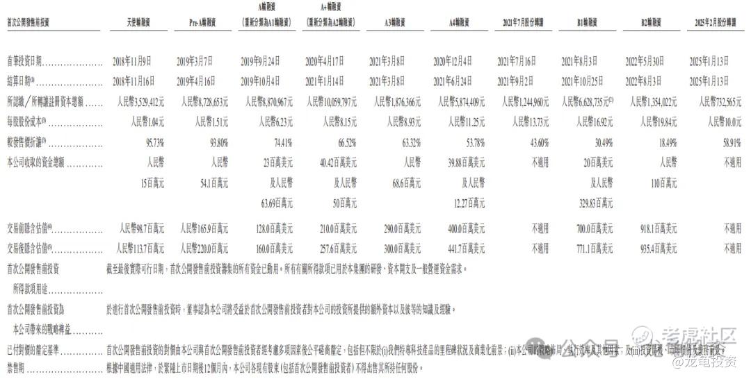 公司IPO前完成多轮融资,B2轮融资最后完成于2022年8月,每股成本19.84元人民币,约合21.65港元;投资后估值9.35亿美元,约合72.66亿港元;较发售价折让19.85%;未设基石投资者;保荐人由中信证券、民银资本、国泰君安、浦银国际和交银国际保荐,未设稳价人;