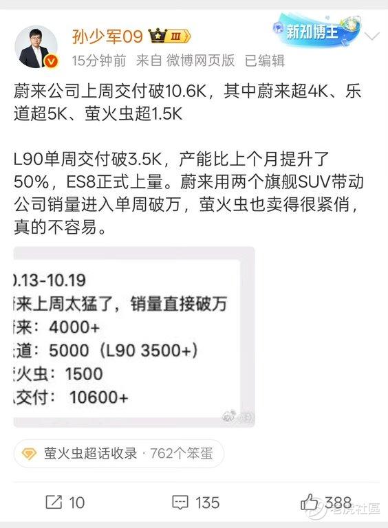 以前是光蔚来1万,现在是三个品牌一周一万。蔚来至少要一个月卖2万+,加上乐道1.5万和萤火虫5000+以上才有可能稳定盈利
