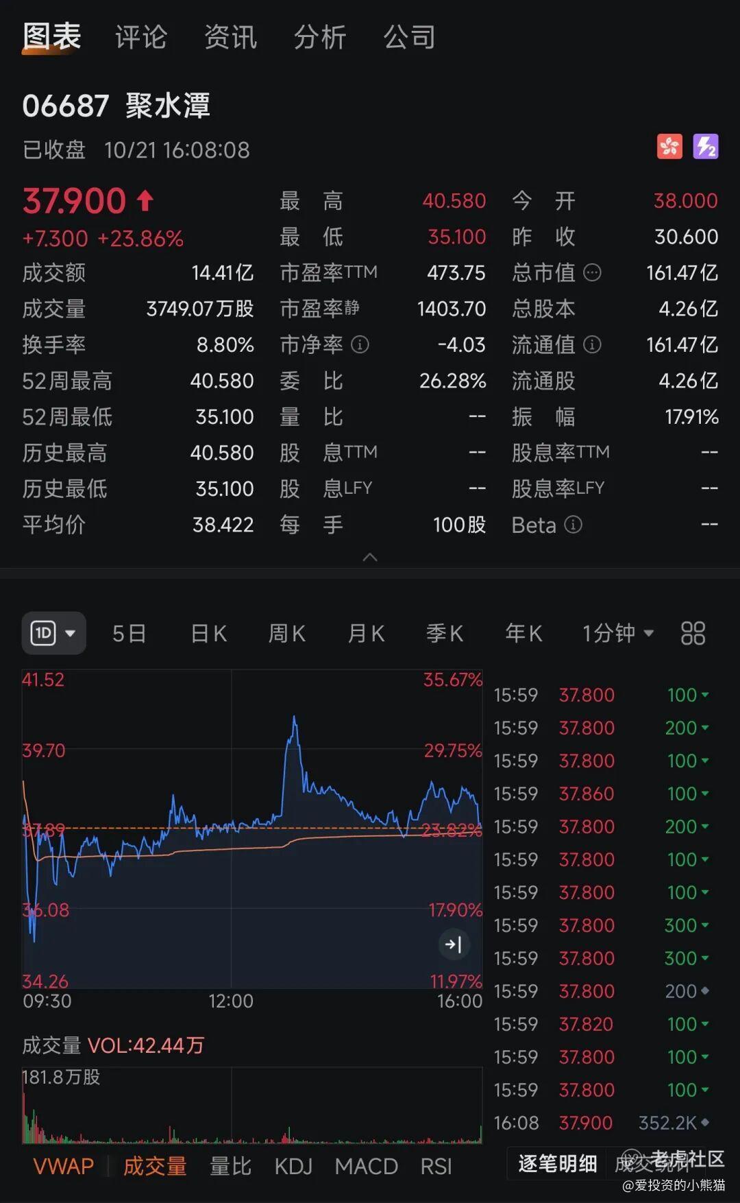 上市首日以38港元/股开盘,较30.6港元的发行价上涨24.18%,最高触及40.58港元,最低下探35.10港元,显示出市场情绪的剧烈博弈。尾盘收报37.90港元,涨幅收窄至23.86%,全日成交3749.07万股,成交额14.41亿港元,总市值约为161.47亿港元 。
