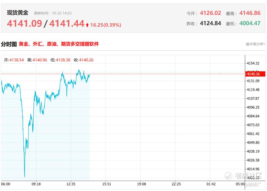 10月21日,此前连续上涨屡创新高的黄金价格突现跳水,急剧下挫,跌幅最高达到6%,创下自2013年4月以来最大的单日跌幅。10月22日早盘,跌势仍在持续,一度跌破4,100美元/盎司,但逢低买盘帮助金价守住了关口,现在位于4,100美元的支撑位附近。
