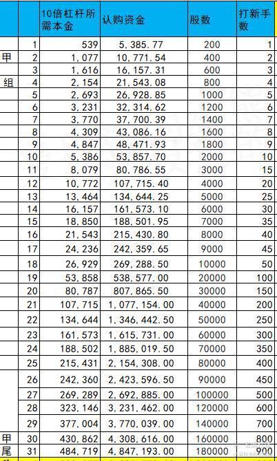 乙头需要认购资金539万,乙组的各档融资所需要的本金还有融资金额对应如下表: