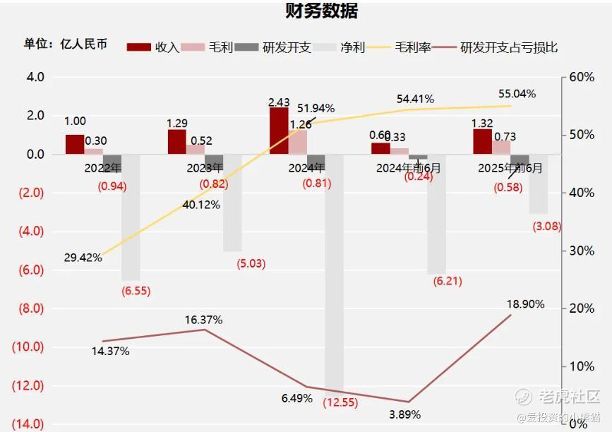 公司2024年收入、毛利增长迅猛,毛利率逐步提升至近52%,但净亏损显着扩大1.5倍,三年累亏超24亿。2024年研发费用基本持平,但研发费用率降至33.5%,截至2025年6月30日,公司的研发团队有147人,占员工总数的40.5%。
