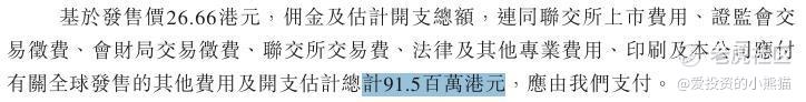 然后这个票招股书上按发售价26.66港元计算,公开的上市所有开支总额约为9150万港元,募资额约7.10亿港元,占比约12.89%,开支相比募资额算是一般化了。