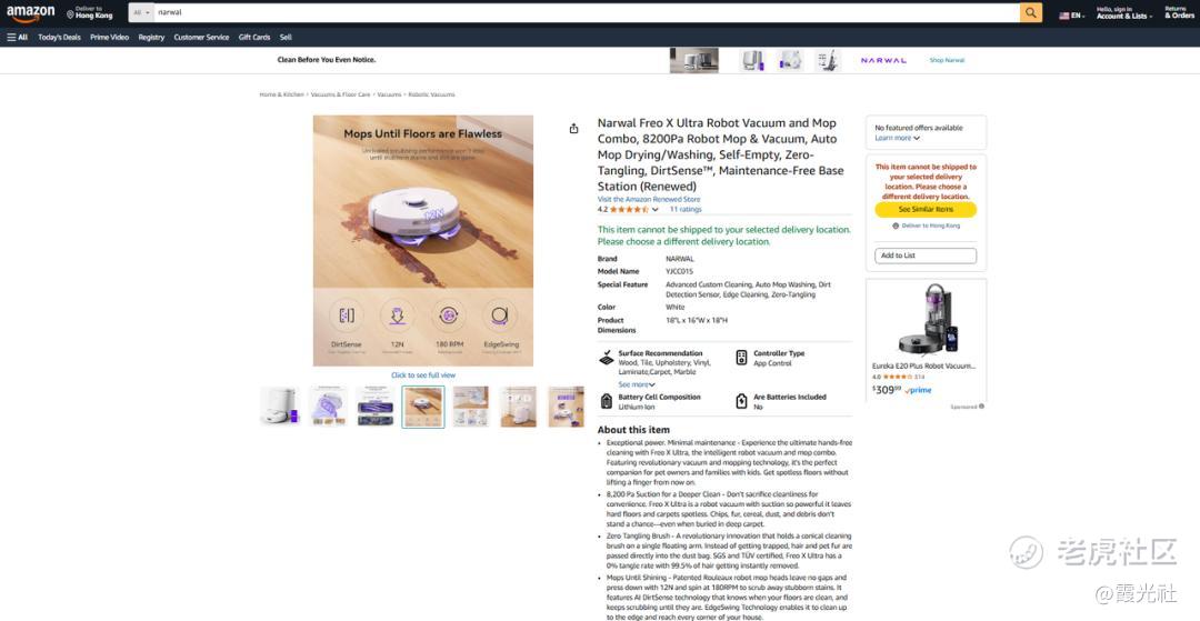 云鲸(NARVAL)在亚马逊用A+页面做的商品展示