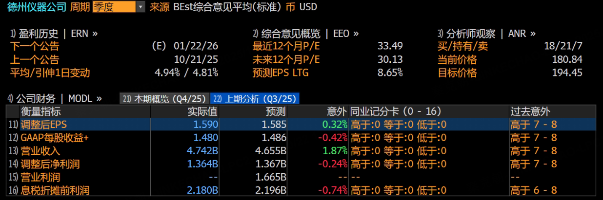 昨日,模拟芯片巨头德州仪器公布了三季报,营收和调整后EPS略超预期: