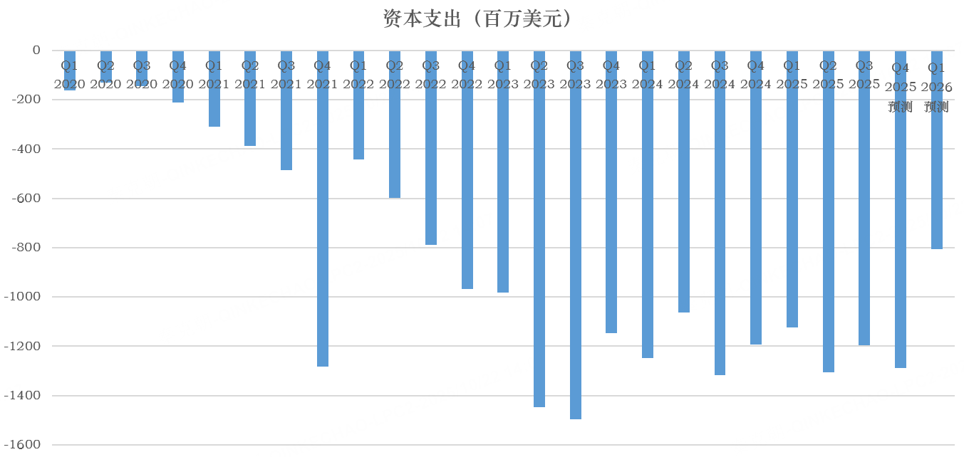 管理层预计今年的折旧金额在18-20亿美元之间,2026年在23-27亿,仍呈上升态势。