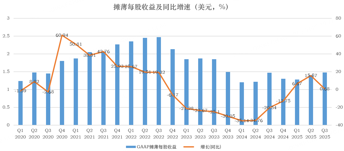 由此导致德州仪器三季度摊薄后每股收益仅为1.48美元,同比增长0.68%: