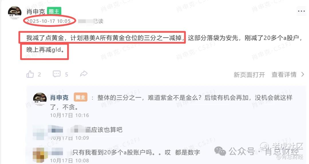 运气好,可以说我们吃满了近一年黄金的主升。下面是上周五分享的减仓通知和部分逻辑。