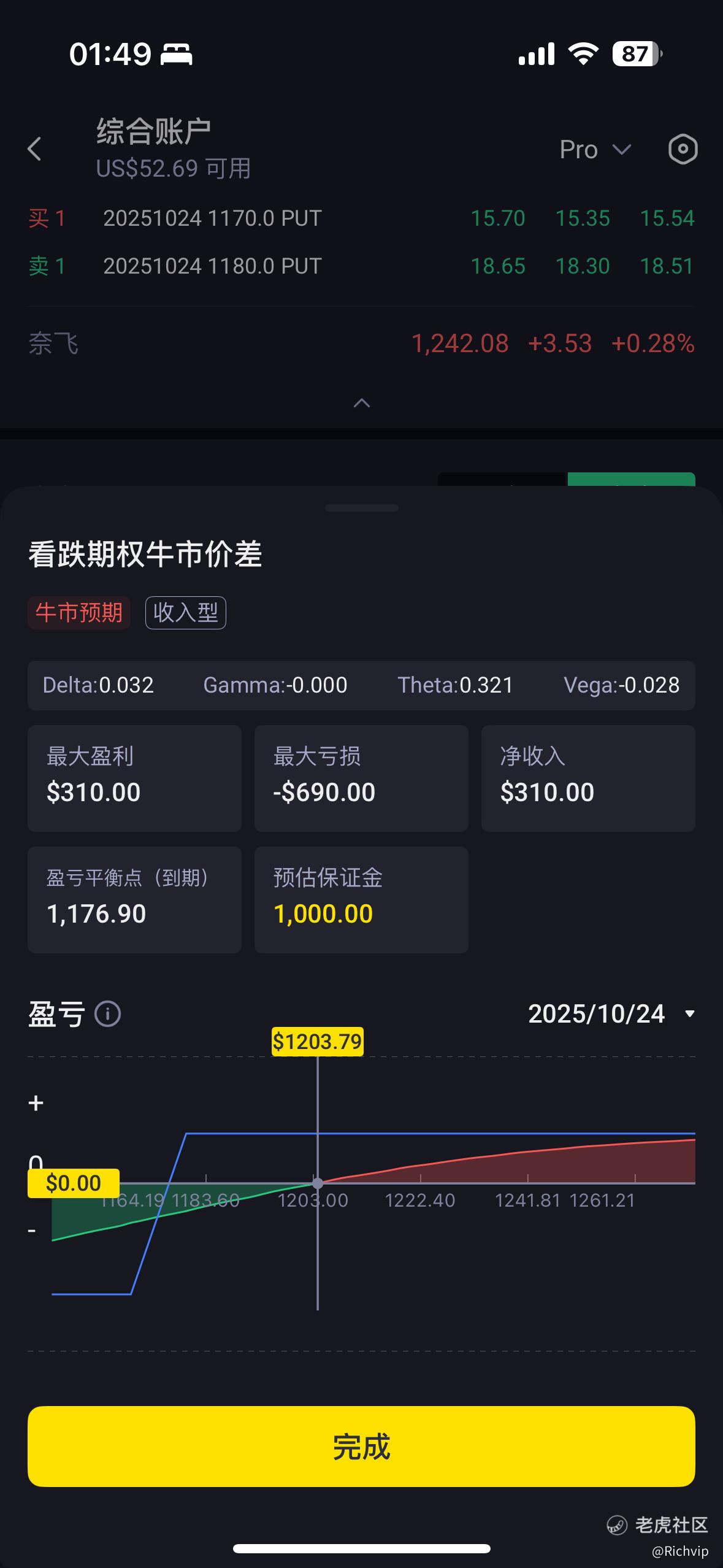 $奈飞 垂直价差 251024 PUT 1180.0/PUT 1170.0$ 美股高位财报来袭,期权财报策略是否火中取栗?