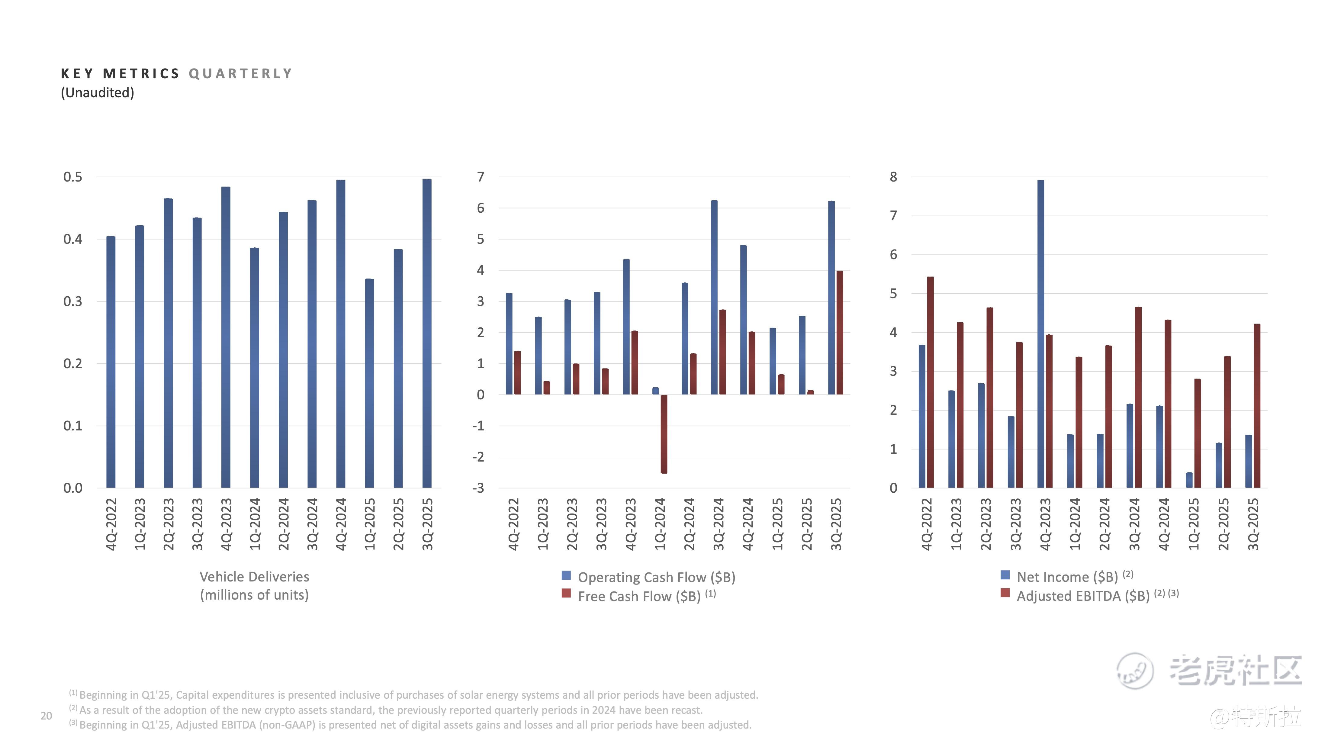 在第三季度,特斯拉团队在全球范围内实现了创纪录的车辆交付,展现出在各个市场的强劲增长势头;同时在住宅、工业和公用事业等领域,储能产品的装机量也创下新纪录。凭借这一强劲表现,公司在本季度创下了收入和自由现金流的双纪录。