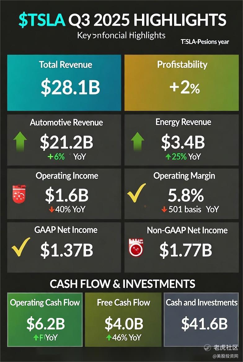 周三美股盘后,特斯拉公布了2025年第三季度财务业绩。这份财报描绘了这家电动车巨头“营收大反弹、但盈利承压加剧”的复杂图景。