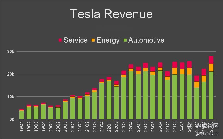 特斯拉第三季度总营收达到280.95亿美元,同比增长12%,环比大增近25%,远超分析师预期的263.6亿美元。这一表现一扫二季度营收同比两位数大跌的颓势。