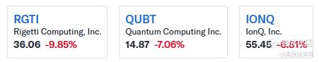 今天的量子计算概念股重挫, $D-Wave Quantum Inc.(QBTS)$ 暴跌15%,RGTI也跌近10%,QUBT跌超7%,IONQ跌近7%。