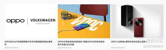 仅2025年截至目前,OPPO就创造了作为许可方加入视频标准专利池、向大众汽车集团网联汽车许可蜂窝通信标准必要专利、5G标准必要专利排名全球第八、与松下签署全球专利交叉许可协议、搭载OPPO闪充专利技术的汽车超1000万辆的成就。