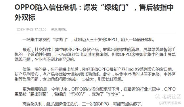 OPPO陷入信任危机:爆发“绿线门”,售后被指中外双标-南财社