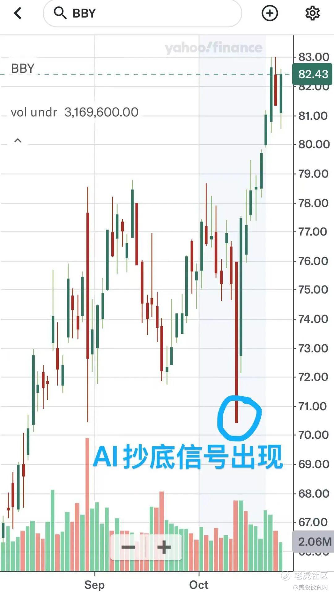 此外,本月10日,美股投资网AI模型在持续追踪零售板块估值时,精准捕捉到了百思买(BBY)的极端技术面K线底部信号