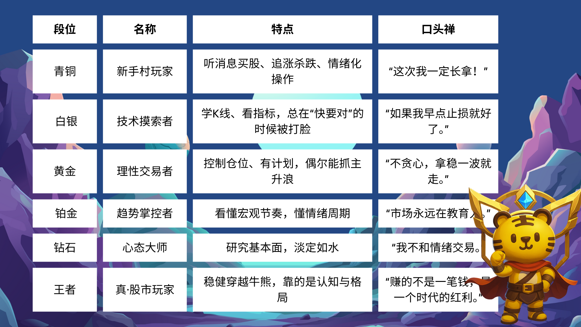如果把股市当成一场游戏——你现在的段位是什么?是刚入坑、还在新手村练级的玩家,还是已经刷满副本、笑看K线风云的老股神?