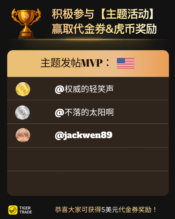 恭喜以下3位小虎,成为上周主题发帖积极&精彩用户,可获5美元代金券奖励![梭哈]