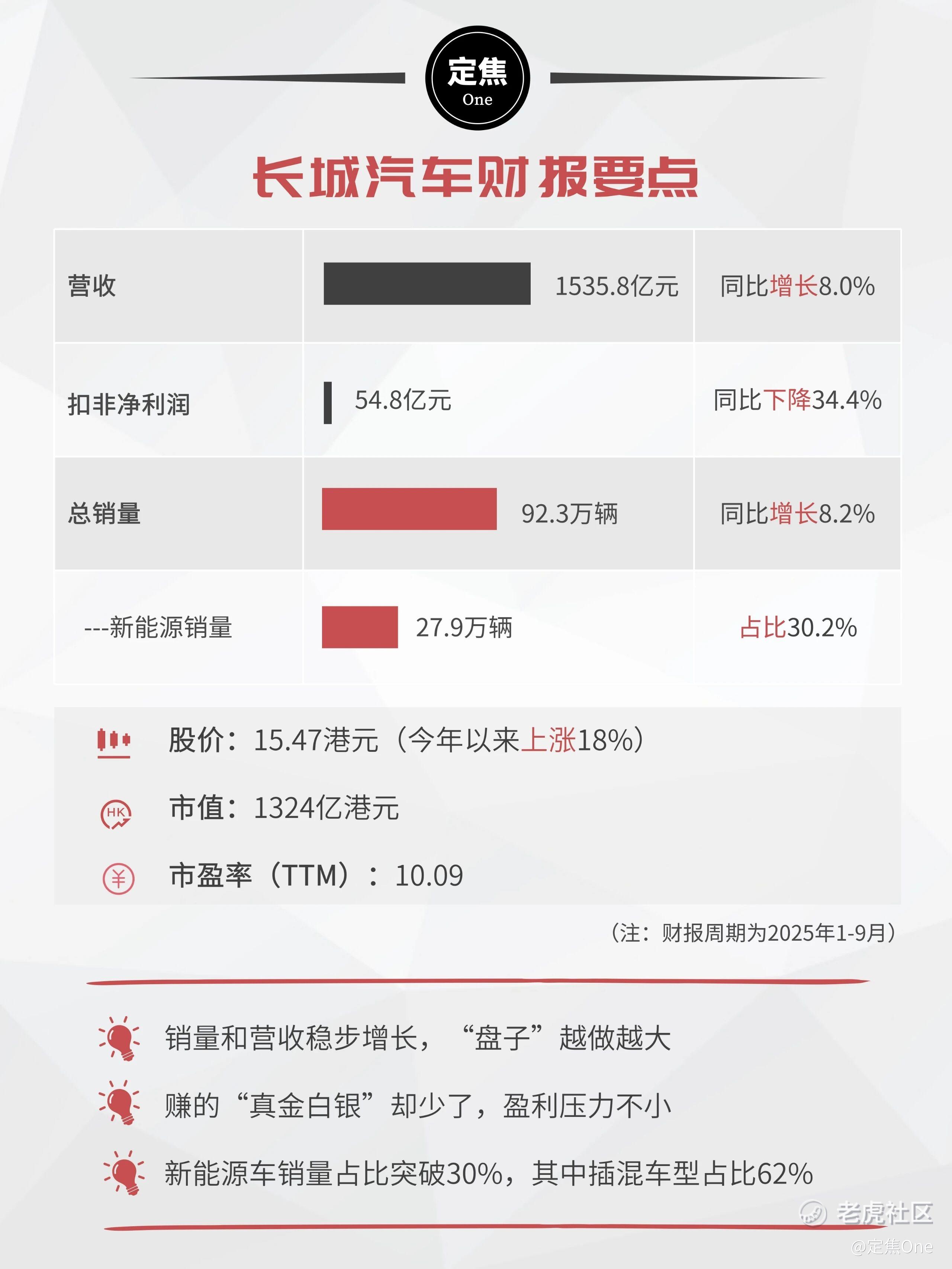 总结今年前三季度的长城汽车:规模在扩张,转型在加速,但代价是利润承压。