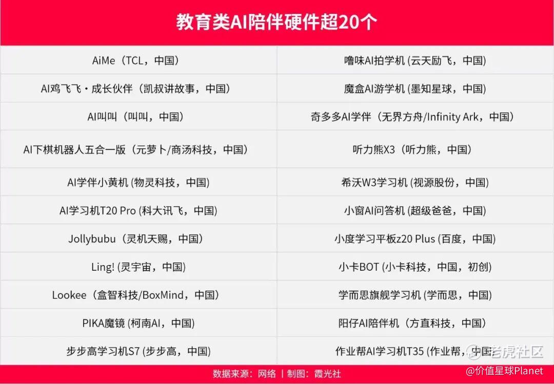 其中,教育赛道成为了最拥挤的一环。据霞光社不完全统计,目前国产的教育属性AI陪伴产品数已经超过20个。