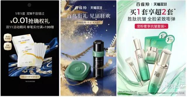 创立于1931年的百雀羚是家喻户晓的国民护肤品牌。今年双11,百雀羚就在淘系打出了差异化的效果——通过淘内首页信息流推荐位“品牌特秀”锁定精准人群,种搜一体,在广告种草的当下就直接引入链接完成购买转化;通过淘内品牌广告“ShowMAX”实时追击高兴趣人群,通过更大更突出的海报样式和效果加速兴趣转化,并使用动态挂件模版,通过发券与飞花样式高效吸引用户入店与互动,有效促进快种快收,让收藏加购率高于行业20%以上。