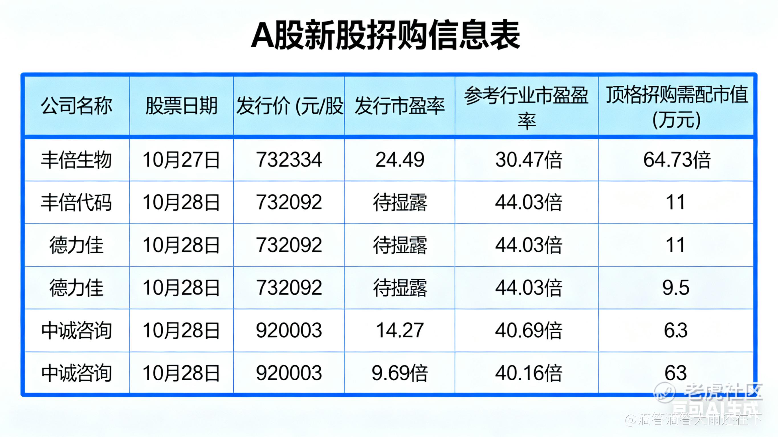 本周(10月27日至31日)有3只A股新股可申购。为了让你能快速了解和对比,我把它们的基本信息整理成了下面这个表格。