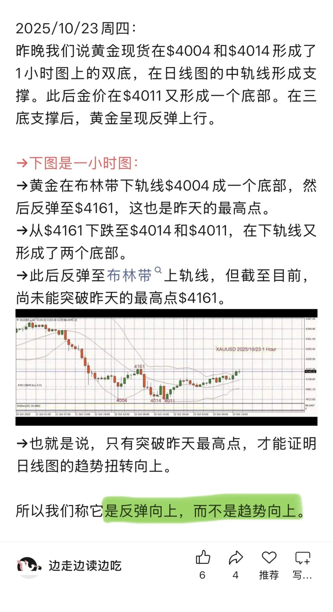 1. 周四我们说:黄金仍然是反弹,而不是突破向上。