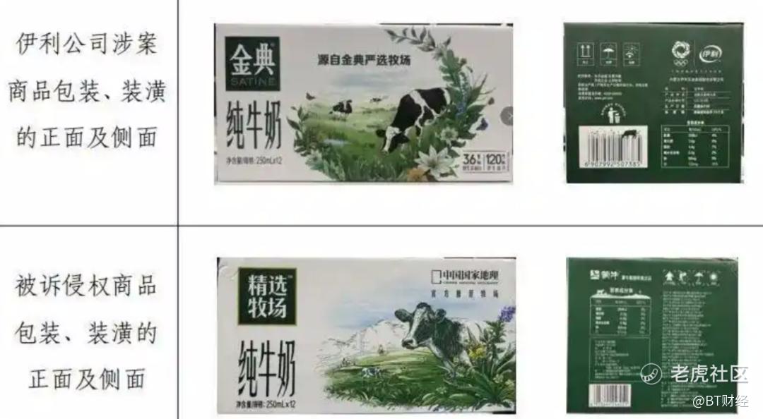 报道显示,对此蒙牛则认为其牧场和奶牛设计元素是牛奶领域常见设计方式,伊利金典纯牛奶的所有要素构成均符合一般公众对牧场的认知,不具有显著的独创性。其包装图形易被识别为乳业行业内常用的宣传图形,缺乏商标应有的显著特征,难以起到区分商品来源的作用。